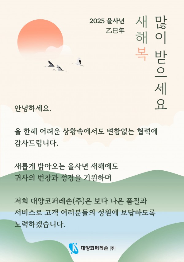 2025년 새해에도 대양코퍼레숀(주)과 함께 하세요.